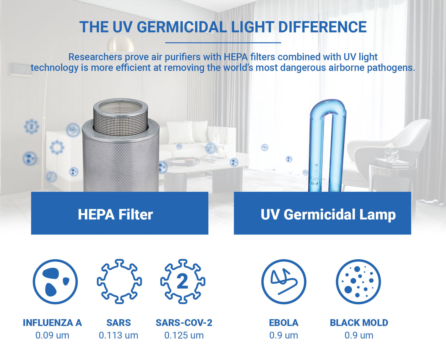UV614 - Germs and Mold Super HEPA: 99.99% Efficient @0.3 microns Air Purifier