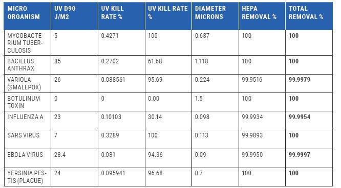 99.99% REMOVAL RATES OF SOME OF THE MOST DANGEROUS AIRBORNE AND AEROSOLIZED PATHOGENS